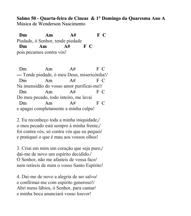 Salmo 50 - Quarta-feira de cinzas Ano A & 1° Domingo da Quaresma Ano A